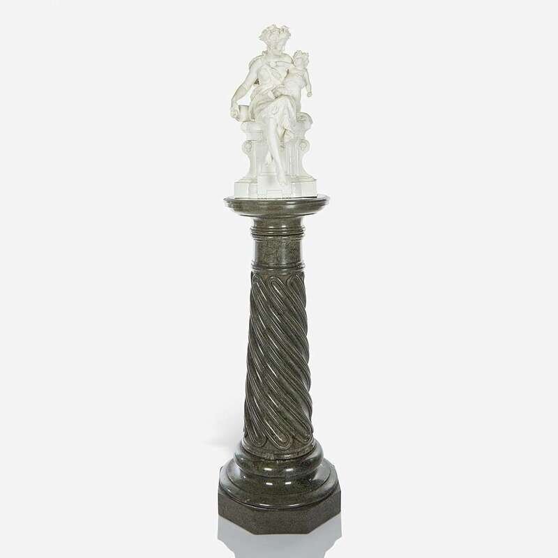 A Neoclassical bisque figural group on green marble pedestal William Brownfield & Sons, Cobridge, dated 1879