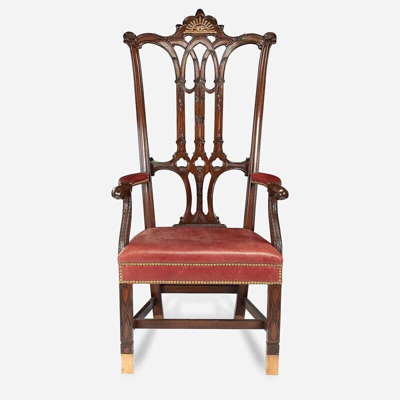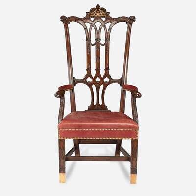 A replica of the Chippendale carved mahogany and gilt-painted "Rising Sun" armchair 20th century