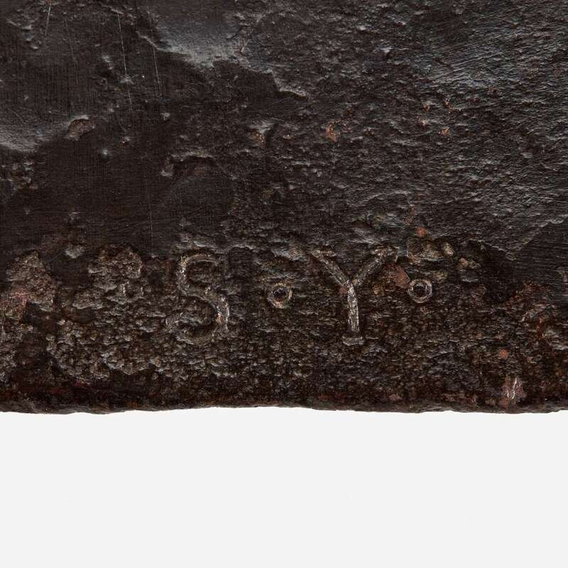 Chased and repoussé-worked iron Stamped and engraved signature: "· S · Y ·"