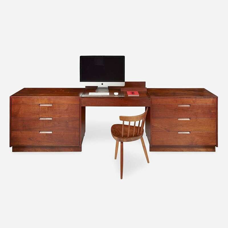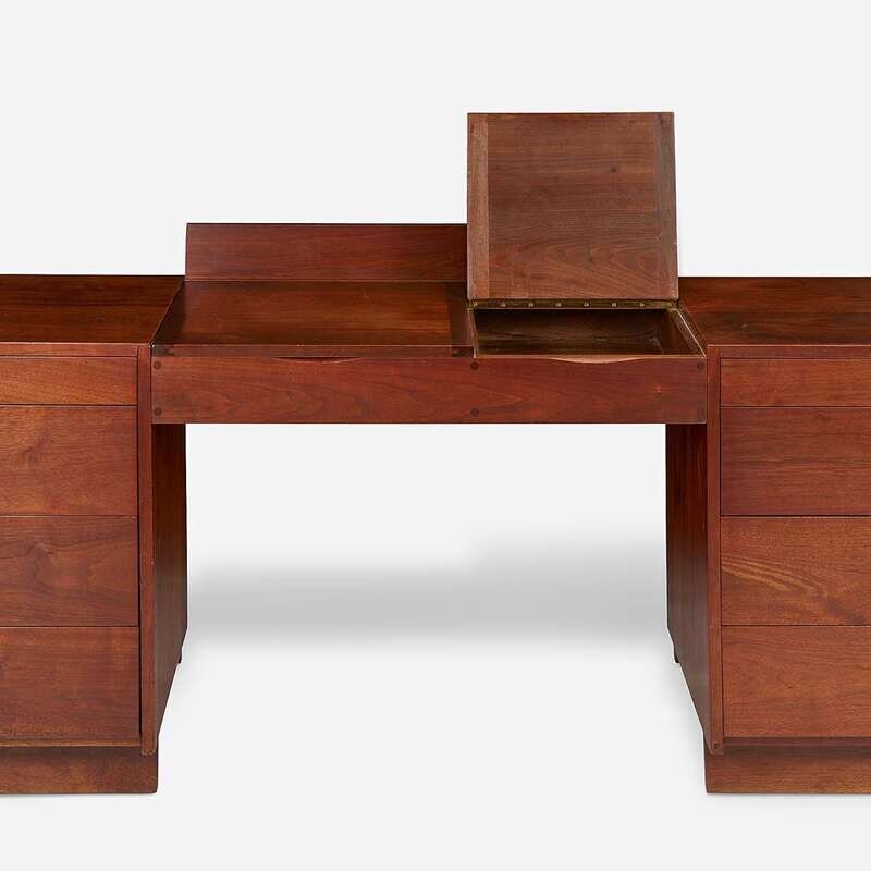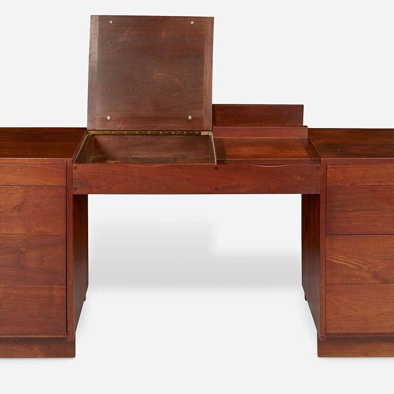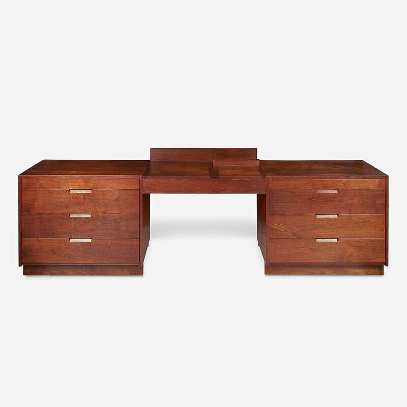 George Nakashima (1905-1990) Pair of Chests of Drawers with Floating Desk or Vanity, New Hope, Pennsylvania, 1957/1959