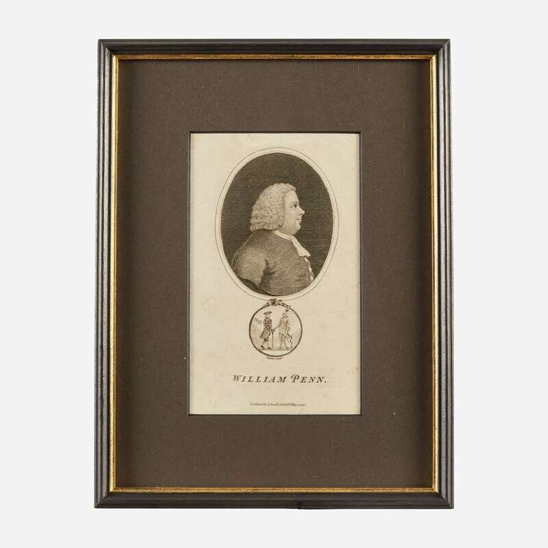 After Pierre Eugene Du Simitiere (Swiss/American, 1737-1784), after Sylvanus Bevan (1691-1765) A Rare Engraving of William Penn (1644-1718)