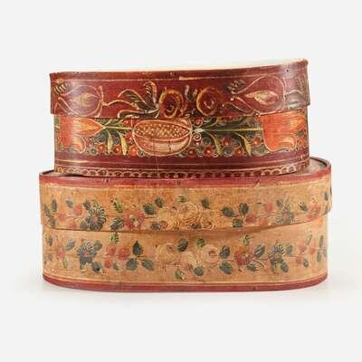 Two polychrome painted and decorated Bride’s boxes Continental, early 19th century
