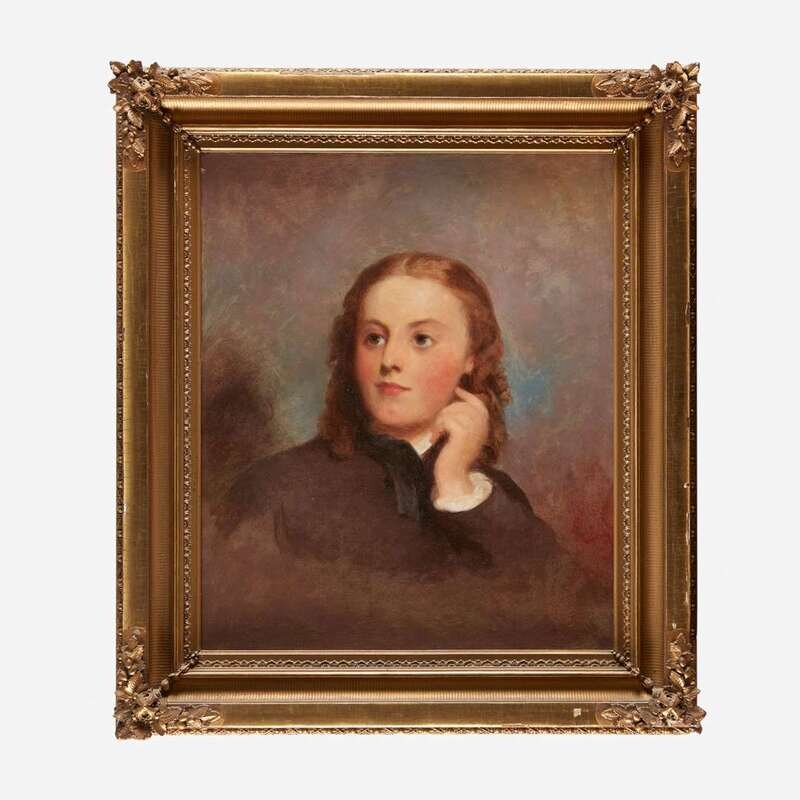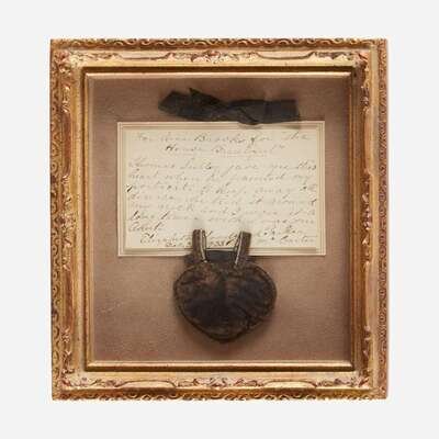Oil on canvas, framed; with companion velvet heart and note inscribed, "For dear Brooks for 'the House Beautiful'/ Thomas Sully gave me this heart when he painted my portrait to keep away all disease. He tied it around my neck and I wore it a long time. With love your Aunt. Elizabeth .....Parker/ Dec. 25 1933/ Me Carter", mounted in frame.
