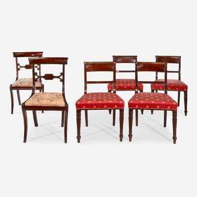 A set of four Classical carved mahogany side chairs Probably Philadelphia, PA, circa 1825