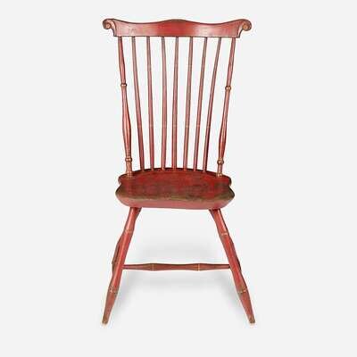 A red-painted fan-back Windsor side chair Lancaster County, PA, circa 1800