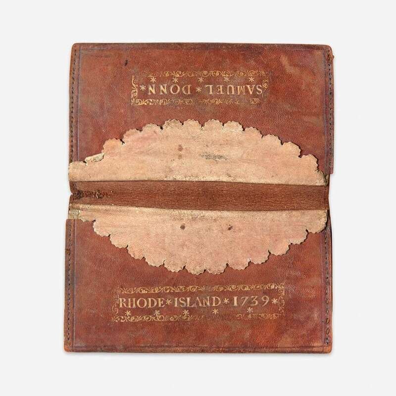 Embossed leather pocketbook of Samuel Dunn dated, "1739"