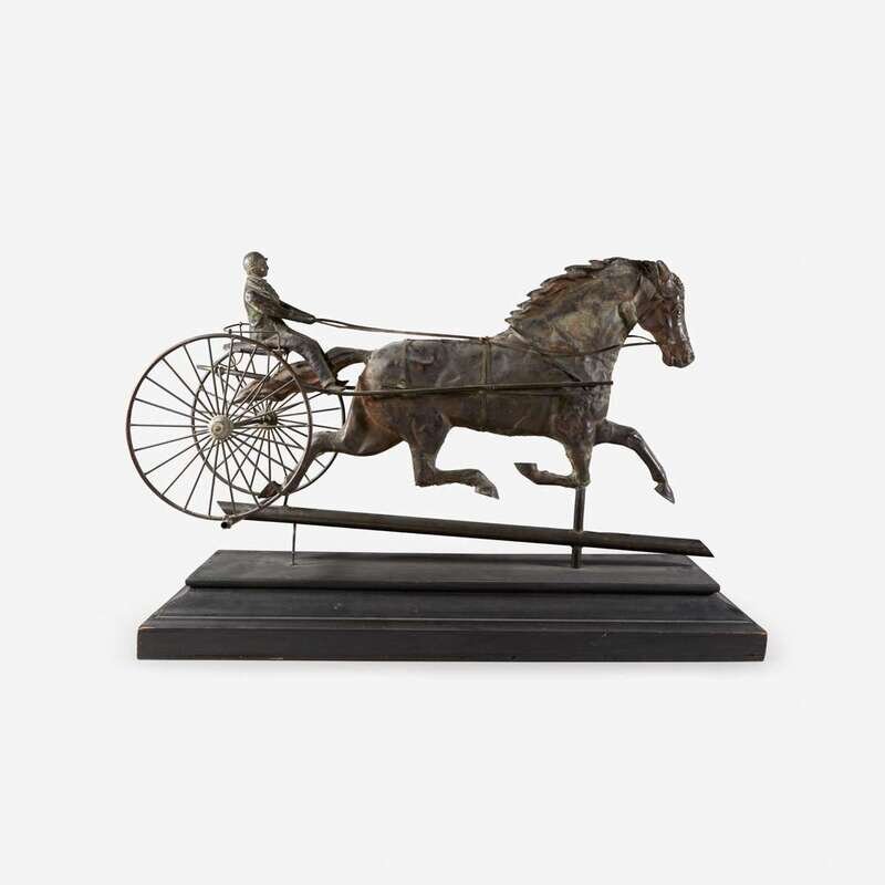 A copper and brass Sulky Driver and Horse weathervane New England, 19th century