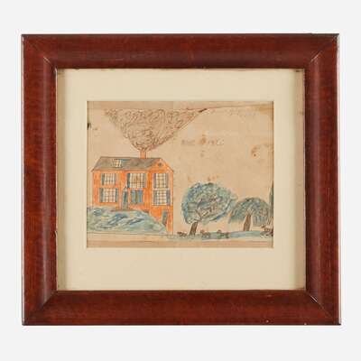 Indistinctly signed, "Drawn by...1820," u.r., ink and watercolor on paper, matted and framed.