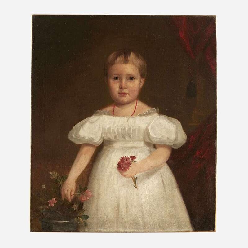 American School 19th century Portrait of Young Girl with Flowers