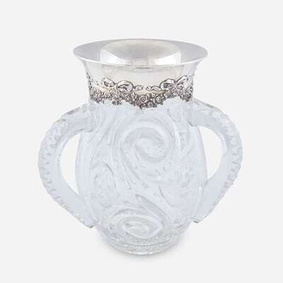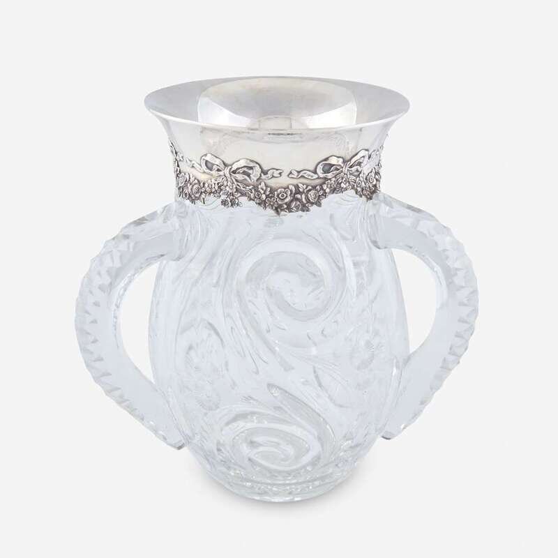 A sterling silver-mounted cut crystal three-handled vase Tiffany & Co., New York, NY, the glass likely J. Hoare & Co., Corning, NY, first half 20th century