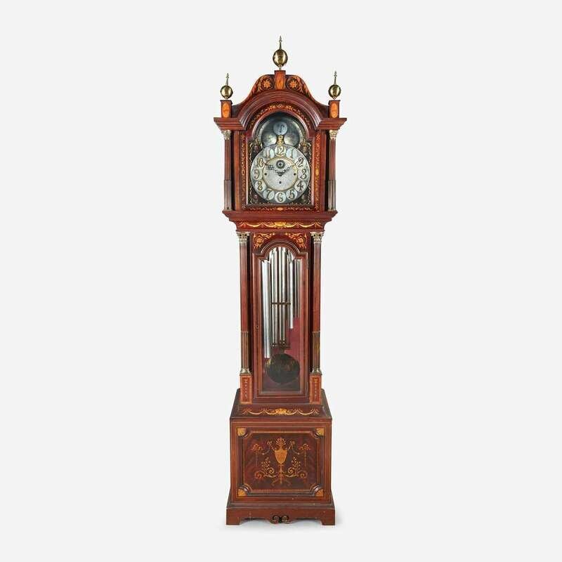 An Aesthetic Movement mother-of-pearl inlaid mahogany tall case clock Retailed by Bailey, Banks & Biddle, Philadelphia, PA, Walter H. Durfee & Co., Providence, RI, late 19th century