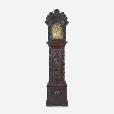 A Renaissance Revival carved oak tall case clock Possibly R. J. Horner, New York, circa 1900