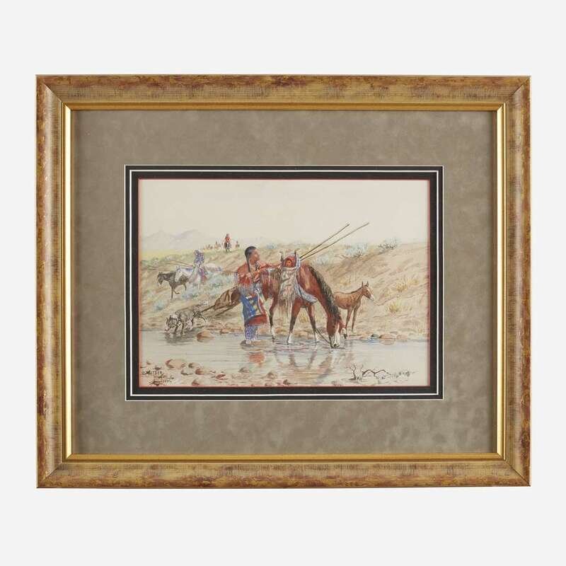 Attributed to Olaf Seltzer (1877-1957) Crossing the Stream, dated, "1901"