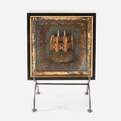 An English quillwork diorama with fortified castle Initialed and dated, "K. C. 1695"