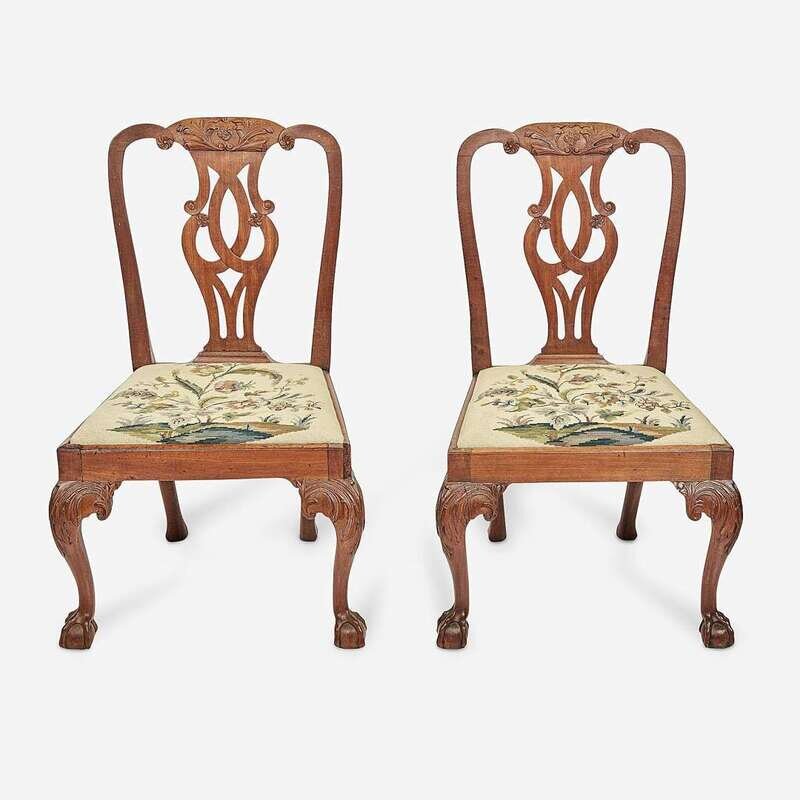 A pair of Chippendale carved walnut side chairs Possibly New York, 18th century