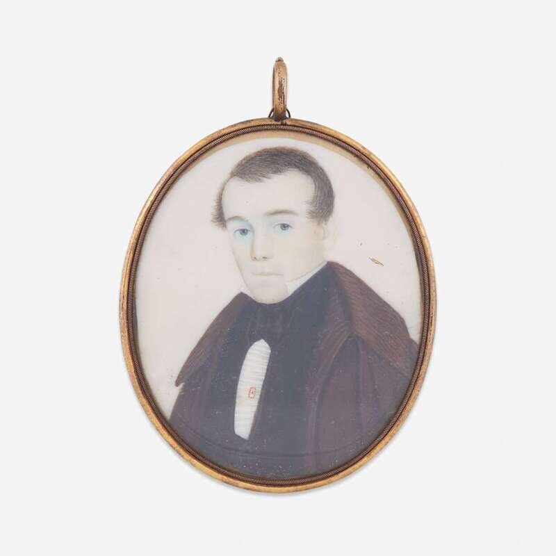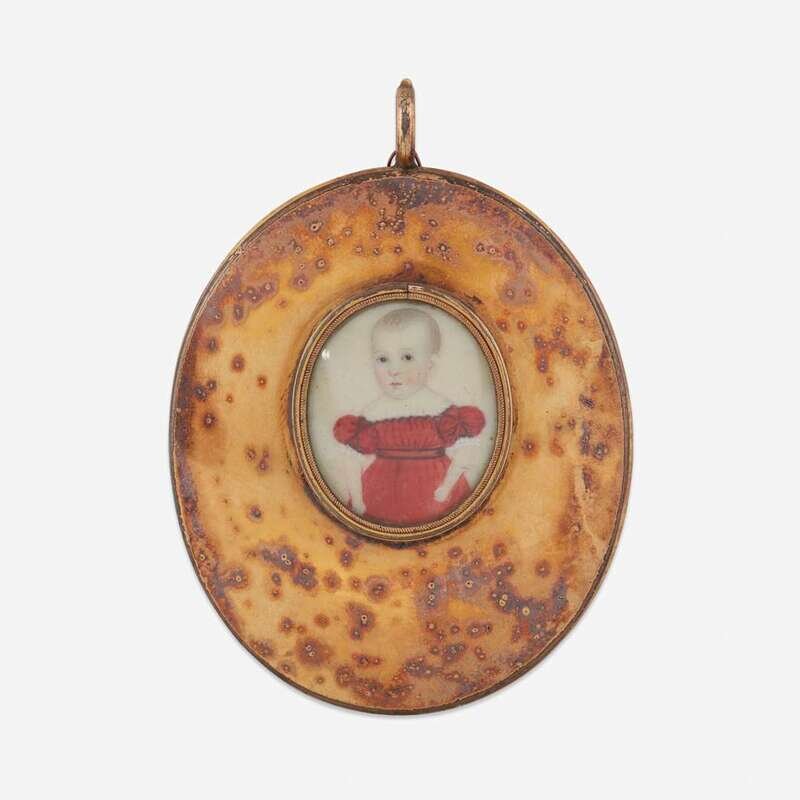 American School 19th century A double-sided portrait miniature: Young man and infant in a red dress, circa 1840