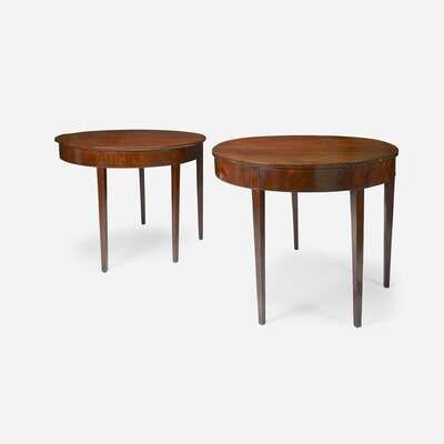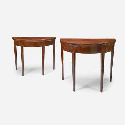 A near pair of Federal inlaid mahogany demilune card tables circa 1800