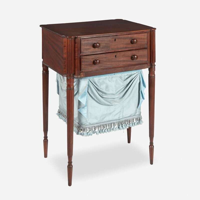 A Federal carved mahogany two drawer sewing table Probably Massachusetts, circa 1810