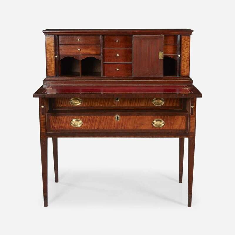 A Federal inlaid mahogany tambour writing desk New England, circa 1790