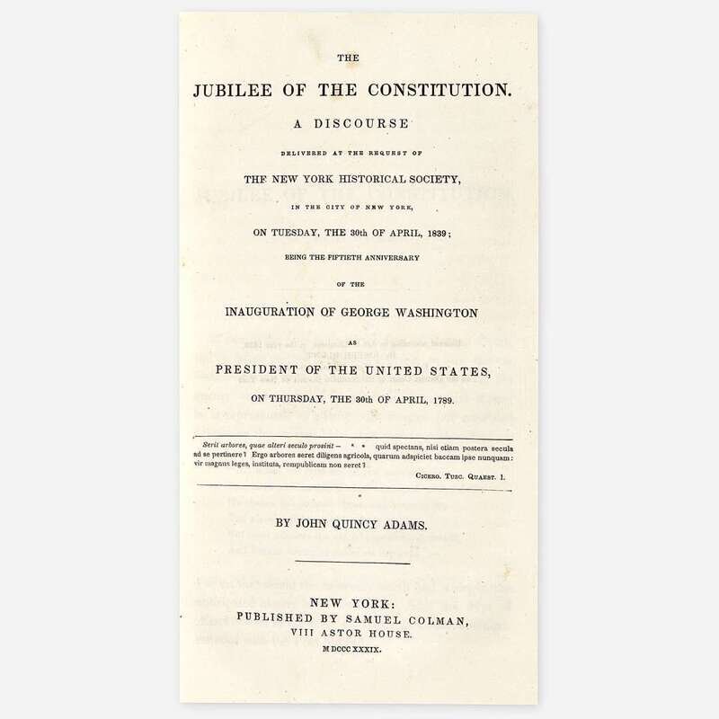 John Quincy Adams (1825-29) The Jubilee of the Constitution. A Discourse Delivered at the Request of the New York Historical Society...