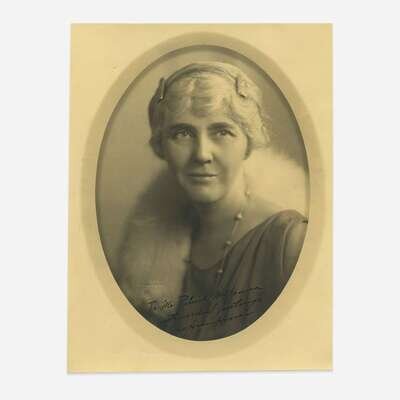No date. Original photograph, inscribed by First Lady Lou Henry Hoover: "To Mr. Patrick McKenna with cordial greetings Lou Henry Hoover." From the Harris & Ewing, Washington, D.C. studio, and with their embossed stamp above inscription. 10 3/4 x 8 1/8 in. (273 x 206 mm).