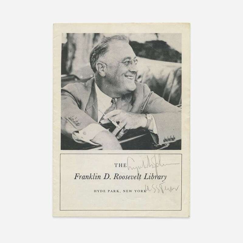 (Washington: United States Government Printing Office, 1957). 8vo. 8 pp. Printed brochure for the Franklin D. Roosevelt Library, Hyde Park, New York, signed in pencil by future thirty-sixth president Lyndon B. Johnson: "Lyndon B. Johnson/USS Texas". Glue and paper residue on final page.