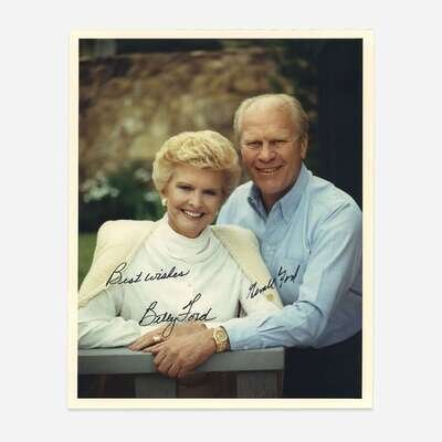 No place, no date. Color photographic portrait of President Ford and First Lady Betty Ford, signed by them in image. 10 x 8 in. (254 x 203 mm).