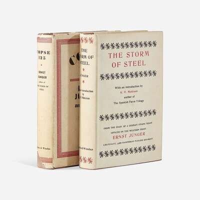 London: Chatto & Windus, 1929. First English edition. 8vo. (xvi), 319 pp. Original red cloth, stamped in blind and in gilt, spine lightly faded; all edges trimmed; in original dust-jacket, lightly toned, head of spine lightly creased, bottom front flap creased, spot on rear flap, verso spotted. Together with: Copse 125 London: Chatto & Windus, 1930. Fifth Impression. 8vo. xii, 264 pp. Illustrated with frontispiece. Original burgundy cloth, stamped in blind and in gilt, boards unevenly faded; all edges trimmed; ownership signature on front free endpaper; prelims foxed; in original dust-jacket; toned and slightly soiled; top and bottom edges repaired on verso, small chipping and short closed tears along edges of same; chip at foot of spine panel; abrasion from a removed label over printed price; verso spotted.