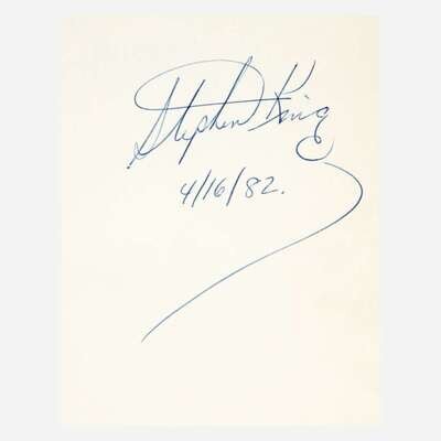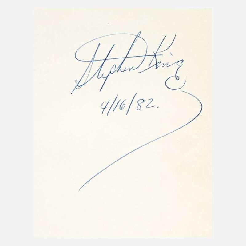 Garden City, New York: Doubleday & Company, 1977. First edition, first printing (with publisher's code "R49" in gutter of p. 447). Signed and dated by King on front free endpaper. Original quarter black cloth over mustard boards, stamped in gilt; all edges trimmed; publisher's ink stamp on front paste-down: "With compliments of/Doubleday & Company, Inc."; small creasing at top corner of pp. 341-46; in original dust-jacket, evenly toned, scattered soiling, small chipping at top and bottom of panel joints, short closed tear at top of front panel, 2 1/4 in. separation along bottom rear flap joint, light dampstaining at foot of spine panel.