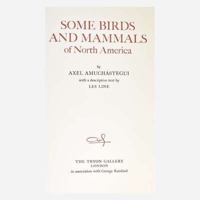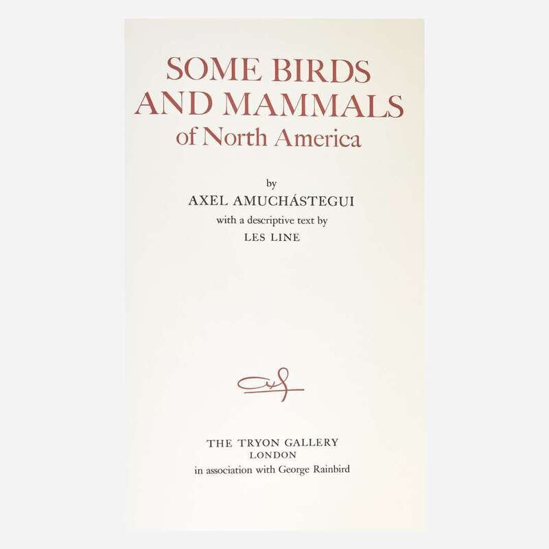 London: The Tryon Gallery in association with George Rainbird, (1971). First and limited edition: one of five copies "specially bound for the artist and his friends" (from a greater edition of 505), this copy marked "D" and signed by Amuchastegui. Elephant folio. Illustrated with 16 stunning color plates of birds and mammals. Text by Lex Line, then editor of Audubon magazine. From the library of Line, although unmarked by him. Original full vellum, lettered in gilt; top edge gilt, other edges trimmed. A fine copy.