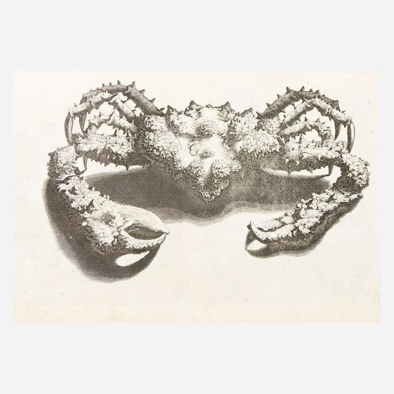The Hague: Petrum de Hondt, 1739. Second edition. Folio. Illustrated with an engraved vignette title-page, one engraved portrait of Rumphius, and 60 engraved plates. Rebound, circa 1900s, in three-quarter reverse tan calf, stamped in blind, over marbled paper-covered boards, spine ends chipped, boards rubbed; marbled edges; original endpapers bound in; prelims slightly toned and foxed, scattered chipping and short closed tears to edges of same; plates variously toned and foxed; index at rear lightly toned and foxed; pencil annotation in plate XV; ex-library with "Islington Literary & Scientific Society" ink stamp at numerous places in prelims, text, and plates; inscription on front blank gifting volume to Islington Society, dated 1833.