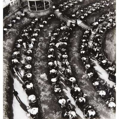 Outdoor Cafe 1933. Gelatin silver print. Signed, titled, and dated in ink on verso. Image/sheet: 12 1/8 x 11 1/2 in. (308 x 292 mm). Together with: Parked Cars 1931. Gelatin silver print. Initialed and dated in pencil on verso. Image/sheet: 11 3/4 x 15 3/4 in. (298 x 400 mm).