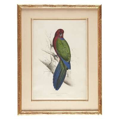 No place, no date (ca. 1830-32). Hand-colored lithograph; from Lear's "Illustrations of the Family of Psittacidae, or Parrots". Printed by C. Hullmandel. 21 1/2 x 14 1/2 in. (546 x 368 mm). Top corner repaired, faint toning along edges. In frame.