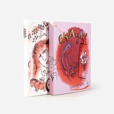Mourlot, Fernand The Lithographs of Chagall 1957-1962 Monte Carlo: Andre Sauret, (1963). Edition in English. 4to. 208 pp. Illustrated with color lithographic frontispiece, 10 color lithographic plates, and numerous color reproductions. Original gray cloth, stamped in black; in original illustrated dust-jacket, old tape residue at top of front panel. Together with: Cain, Julien The Lithographs of Chagall 1962-1968 Boston: Boston Book and Art Shop, Inc., (1969). First American edition. 4to. 179 pp. Illustrated with color frontispiece and numerous color illustrations. Original gray cloth, stamped in black; ownership signature at top of front free endpaper; in original illustrated dust-jacket, faint stain at foot of spine panel.