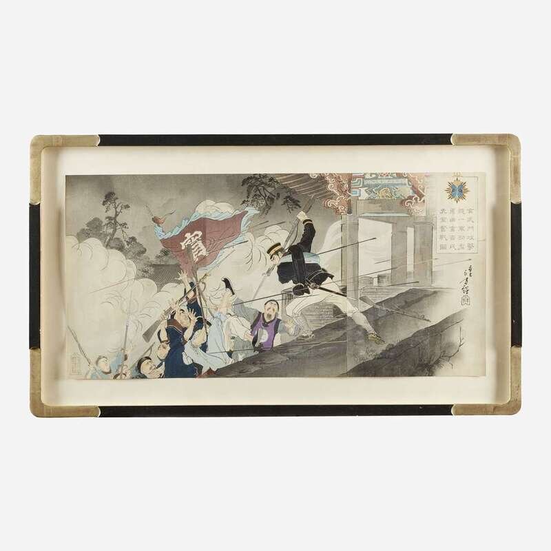 Nihonbashi, Tokyo: Akiyama Buemon, Meiji 27 (October, 1894). Color woodcut, oban triptych. Print: 13 5/8 x 27 1/4 in. (346 x 692 mm) (sight). Unexamined out of frame, 18 5/8 x 32 1/2 in. (473 x 825 mm).