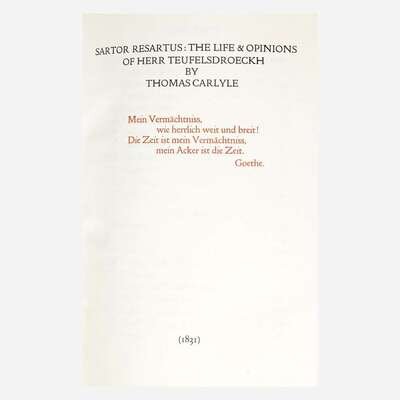 [Private Press] [Doves Press] Carlyle, Thomas Sartor Resartus