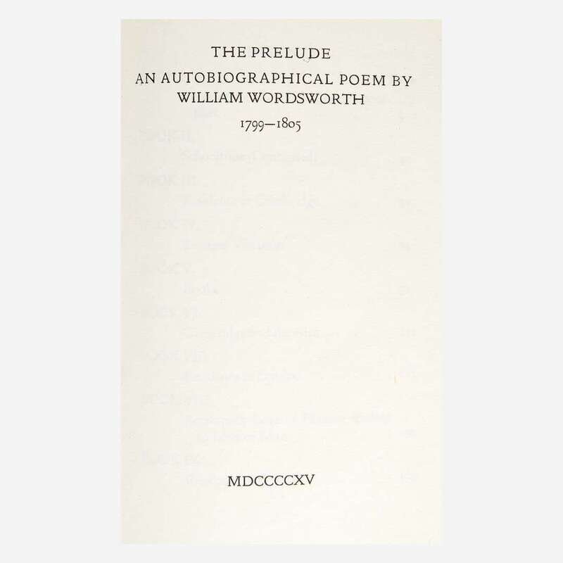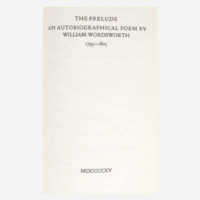 [Private Press] [Doves Press] Wordsworth, William The Prelude: An Autobiographical Poem by William Wordsworth 1799-1805