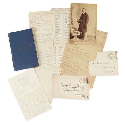 Circa. 1870s-1891. Including a cabinet card portrait of Read (ca. 1870s) from the Geo. H. Leck photography studio (Lawrence, Massachusetts); Read's copy of "Incandescent Wiring Hand-Book" (1891) with his ownership signature and stamp on title-page; 6 pp. notes, presumably from Read's notebook; one letter from Joseph Sacco-Albanese to Read with original postal envelope; and one additional postal envelope addressed to Read.