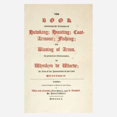 [Sporting] [Berners, Juliana] The Book containing the Treatises of Hawking; Hunting; Coat-Armour; Fishing; and Blasing of Arms (Book of St. Albans)