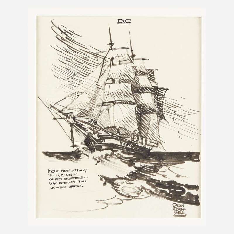 No place, no date. Pen and ink on paper. Signed by Cornwell, bottom right, inscribed by him, bottom left: "Most respectfully/to our Dean/of art directors--/we dedicate this/humble effort." 11 x 8 1/2 in. (279 x 215 mm). In mat.