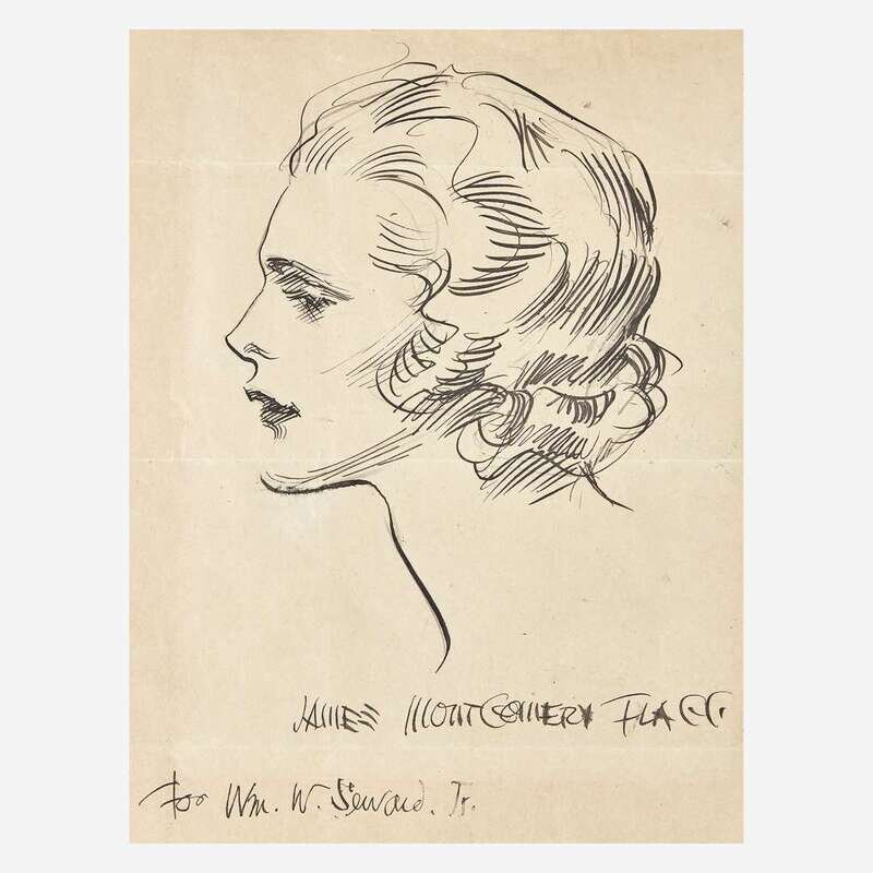 No place, no date. Pen and ink on paper, inscribed by Flagg at bottom: "James Montgomery Flagg/For Wm. W. Seward Jr." 10 x 7 7/8 in. (254 x 200 mm). Mounted to board, and in mat and in frame.