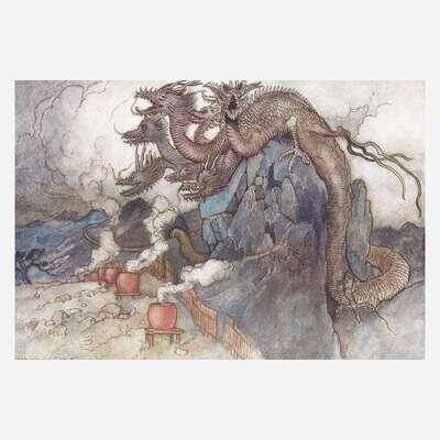 London: Macmillan and Co., Limited, 1910. One of 500 copies of the Edition de Luxe. 4to. (281) pp. Illustrated with color frontispiece, and 39 mounted full-page color plates, by Goble. Publisher's full vellum binding, stamped in gilt, silk ties wanting; top edge gilt, other edges untrimmed; light foxing to prelims; contemporary gift inscription on first free leaf; enclosed in an oatmeal buckram fall-down-back box.