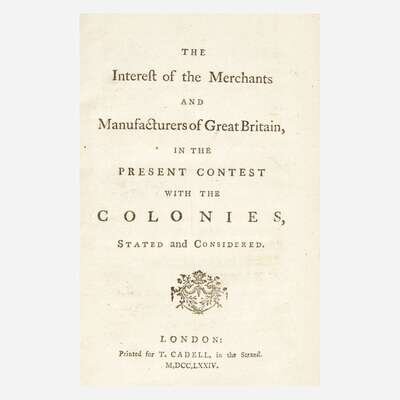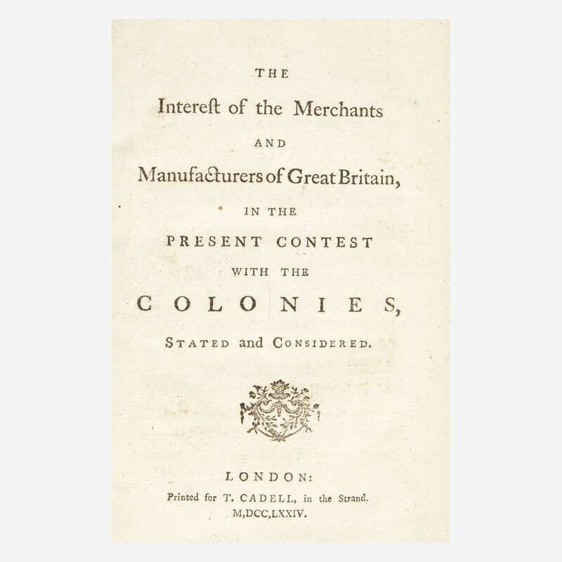 [Finance] (Knox, William) The Interest of the Merchants and Manufacturers of Great Britain in the Present Contest with the Colonies, Stated and Considered
