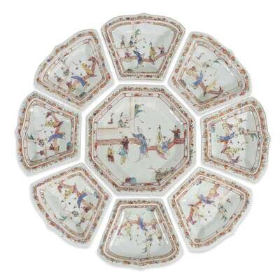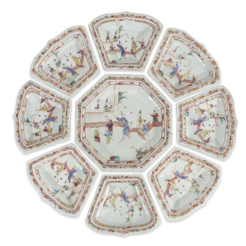 Nine-piece Chinese Export porcelain gilt and enamel-decorated supper set 18th century