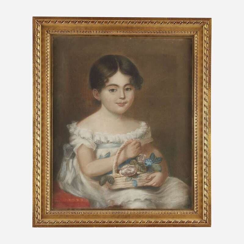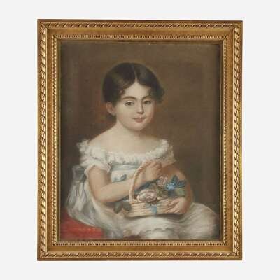 American School 19th century Portrait of a young girl with flower basket