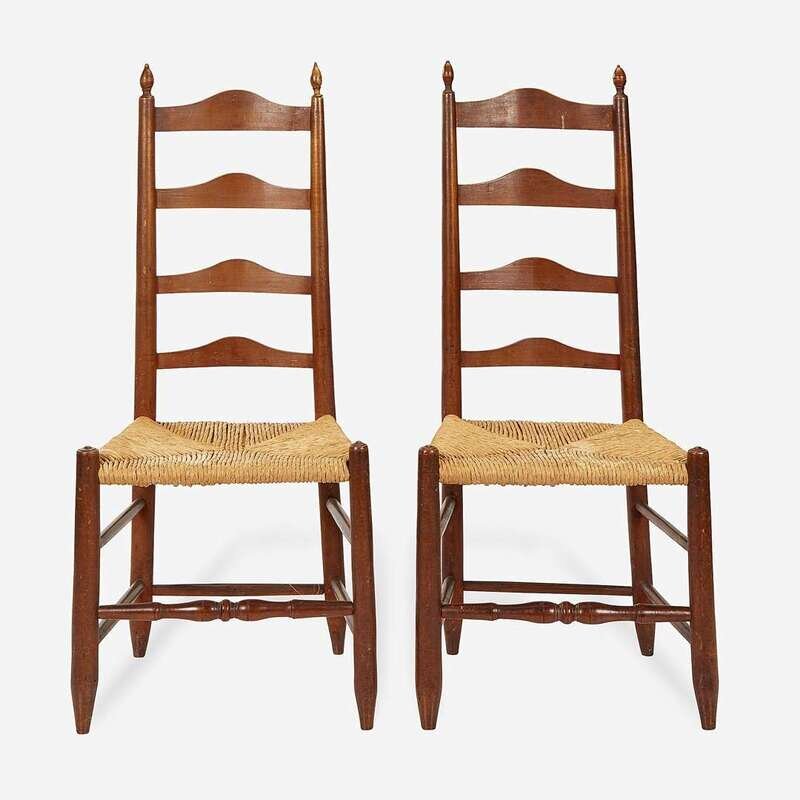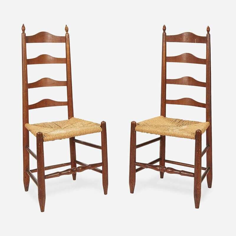 A pair of carved and turned maple ladder-back side chairs early 19th century