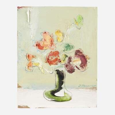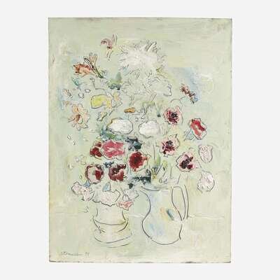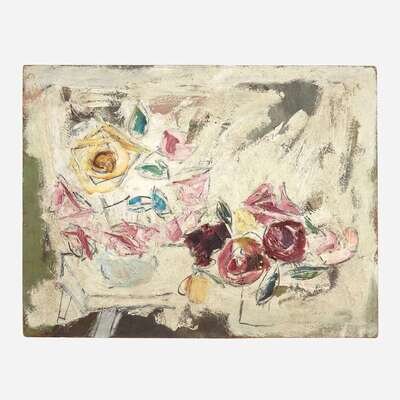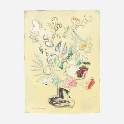 Sterling Boyd Strauser (American, 1907–1995) Yellow FlowersArrangement in Two VasesRosesFlowers in Green VaseDaisies