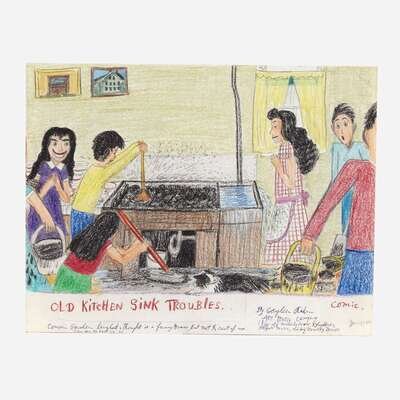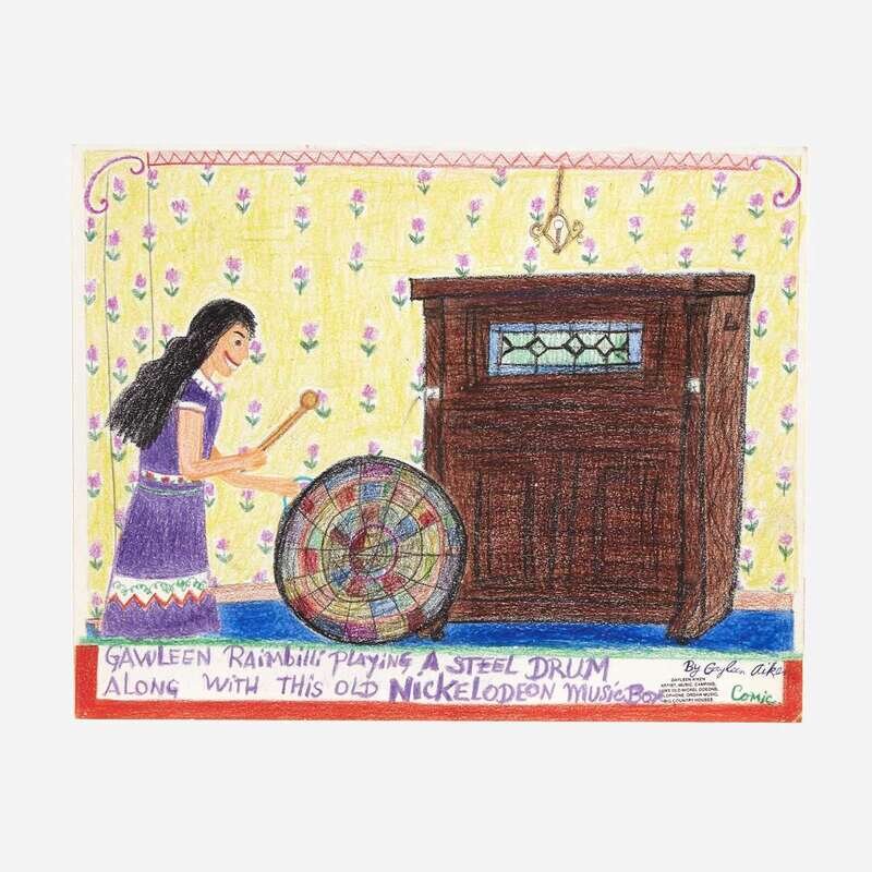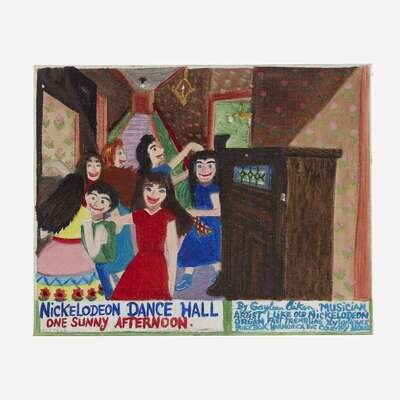 Gayleen Aiken (American, 1934–2005) Nickelodeon Dance Hall One Sunny AfternoonGawleen Raimbilli Playing a Steel Drum Along with This Old Nickelodeon Music BoxOld Kitchen Sink TroublesDance around a Jukebox