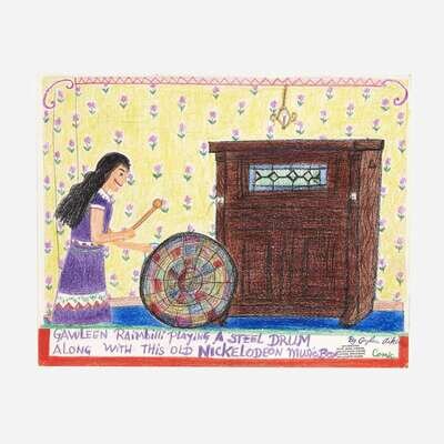 Gawleen Raimbilli Playing a Steel Drum Along with This Old Nickelodeon Music Box