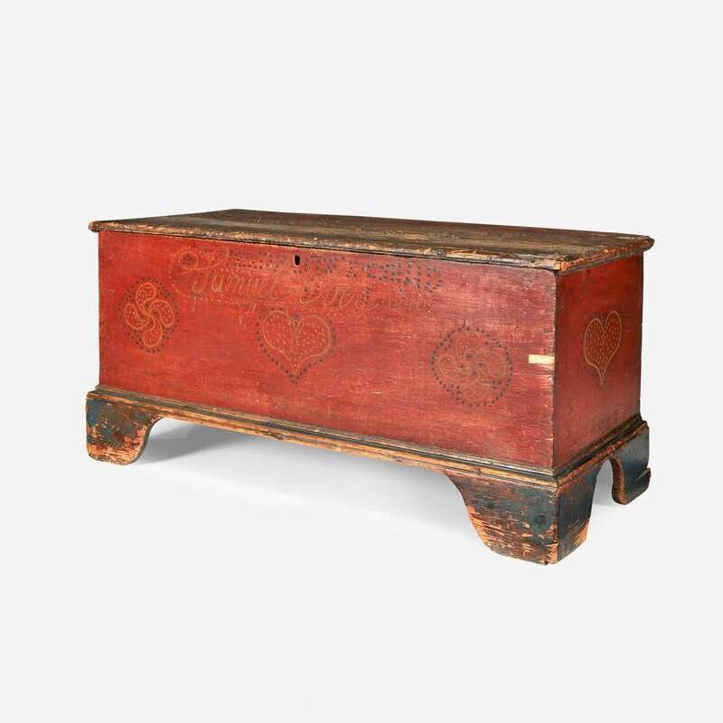 Red-painted blanket chest Inscribed and dated, "Samuel Ober 1840"